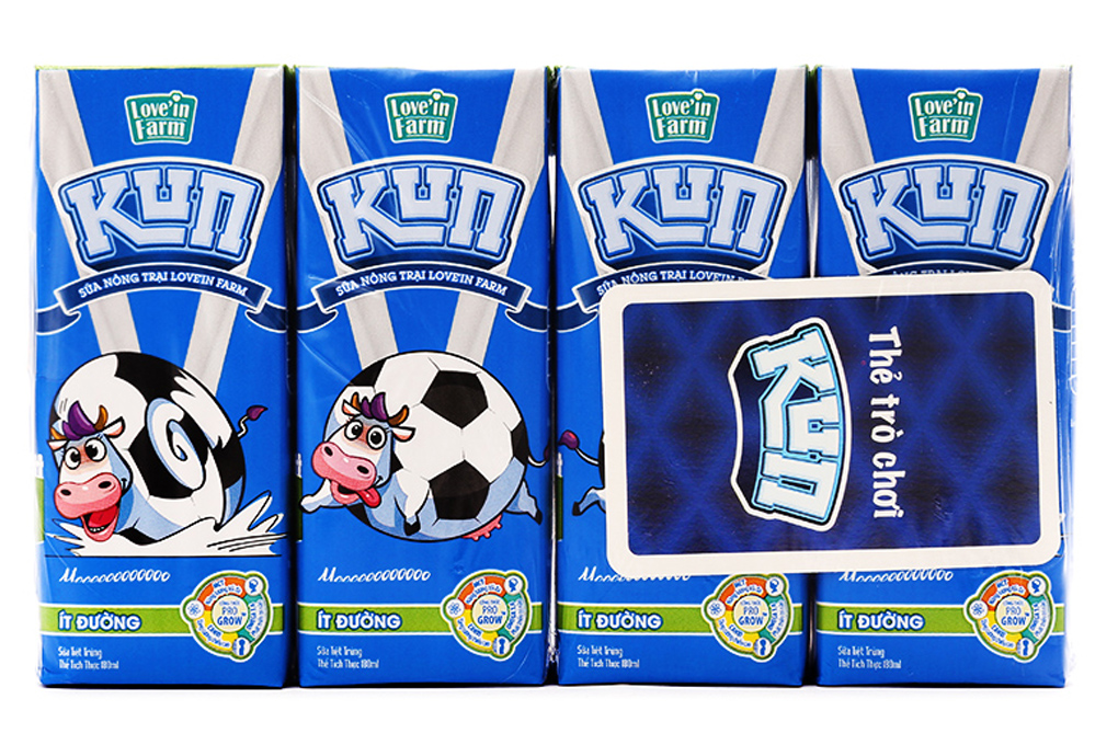 Hình ảnh Sữa tươi tiệt trùng Kun ít đường hộp 180ml (lốc 4 hộp)